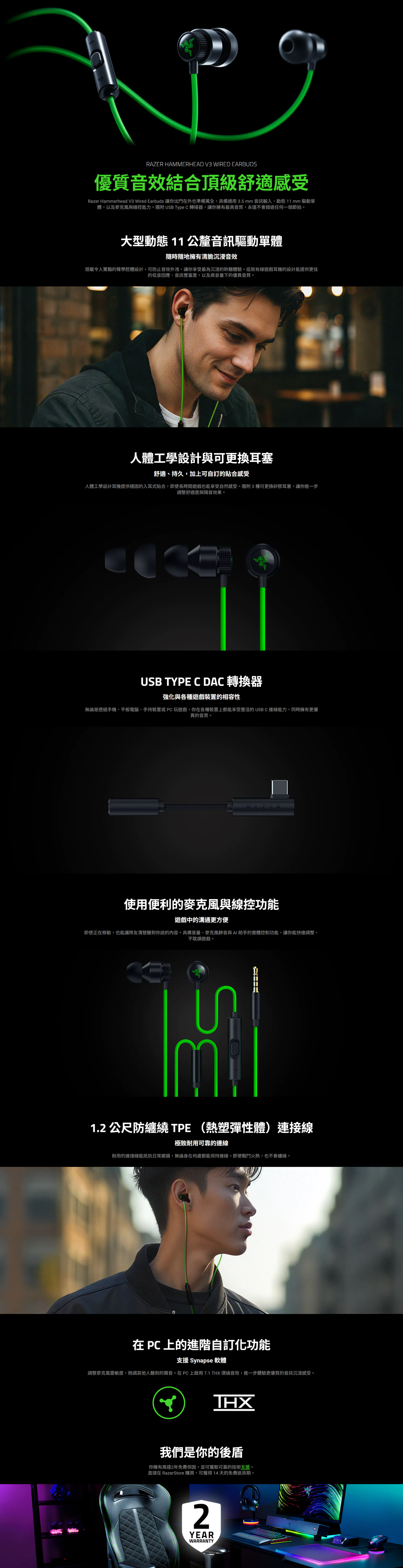 RZ12-05590100-R3AC Razer Hammerhead V3 Razer Hammerhead V3Wired Earbuds for GamingAP and China Packaging